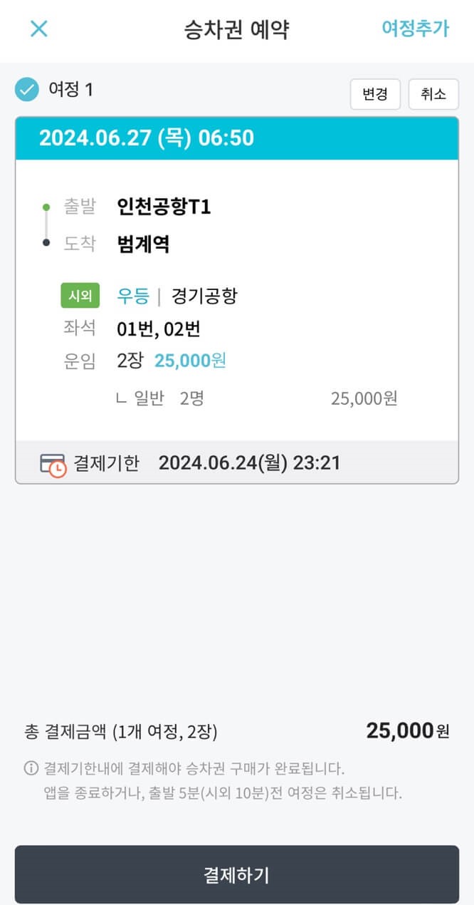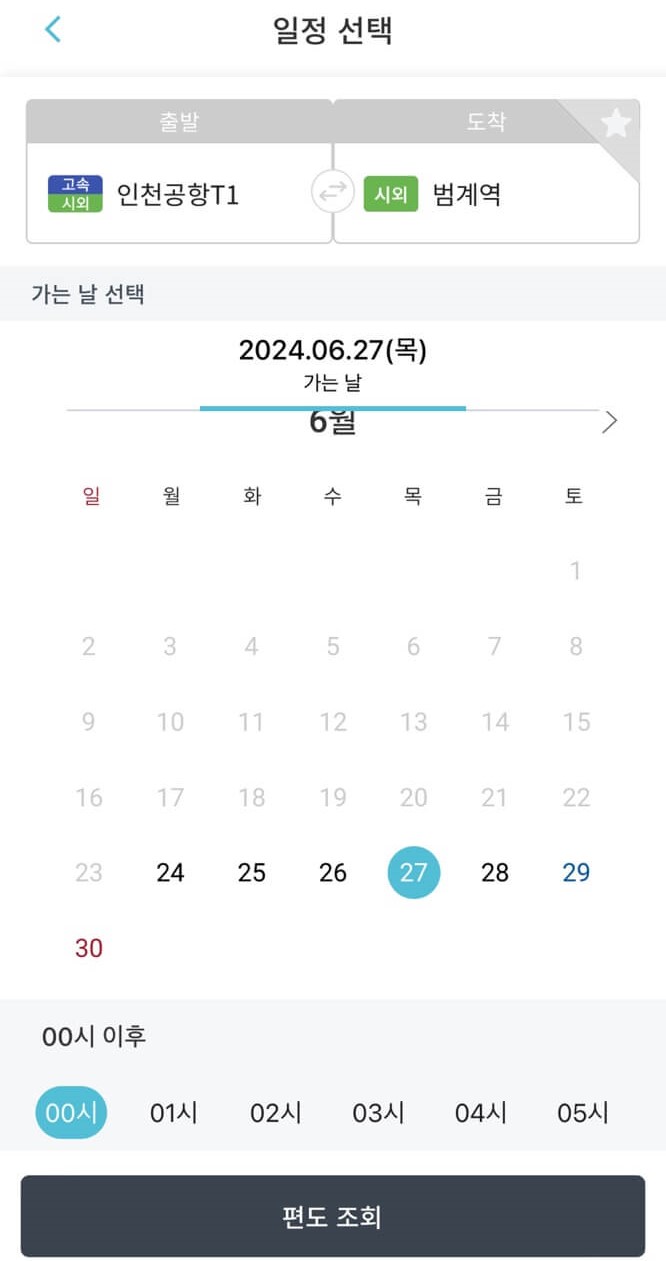 - 범계역에서 인천공항 가는 버스를 예약 시 어플: 버스타고