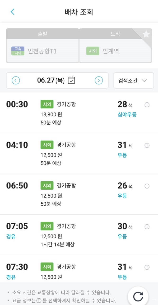 - 인천공항에서 범계역 가는 공항버스 예약 시 어플: 티머니GO