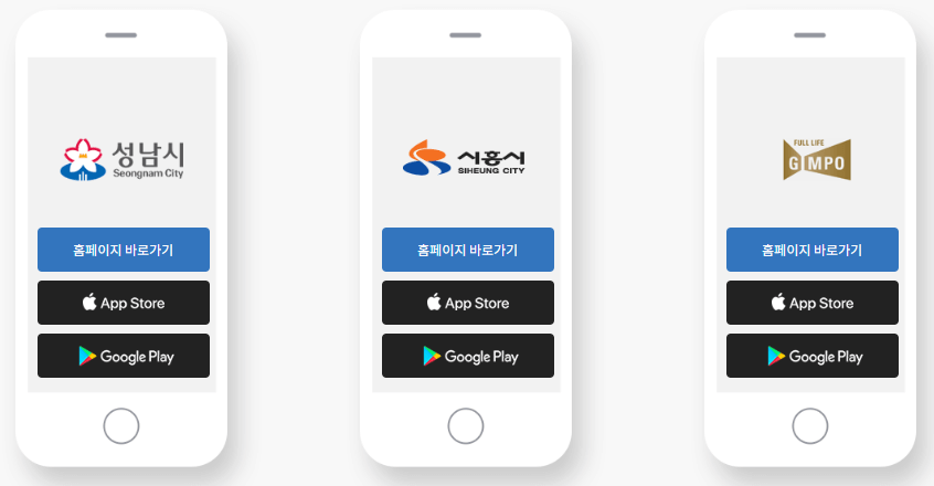 일부 시군에서는 모바일형 지역화폐를 서비스 하고 있습니다. 성남시, 시흥시, 김포시의 경우 지역 화폐 홈페이지에서 별도의 앱을 다운로드 받으신 후 사용하시면 됩니다.