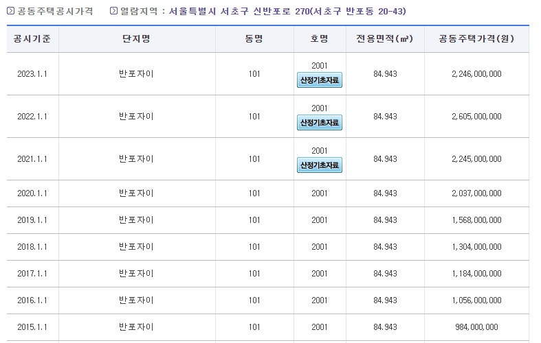 국토교통부 홈페이지의 부동산 공시가격 알리미에서는 2006년 이후 공동주택 공지기가만 조회가능하며 2005년 이전 자료는 국세청 홈텍스 홈페이지의 기준시가 사이트에서 확인 가능합니다.