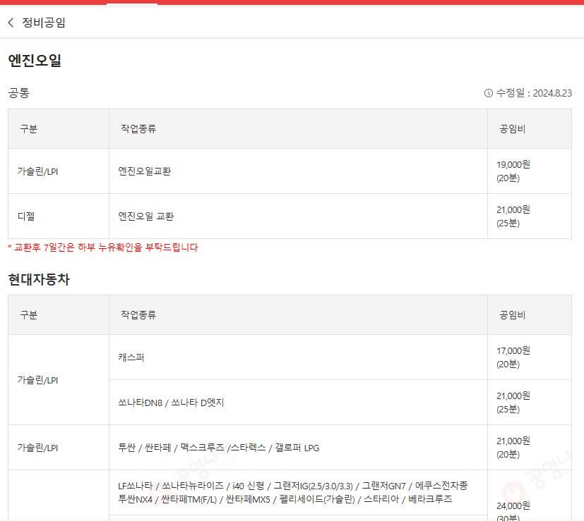 공임나라 타이어교체공임나라 오일교체공임나라 공임비