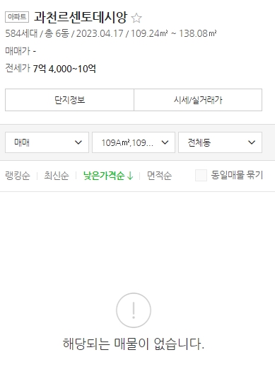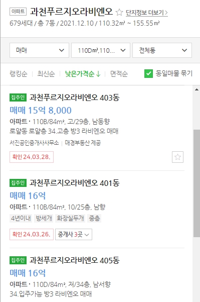 현재 4월 11일 기준 네이버 부동산 호가를 확인해보겠습니다.