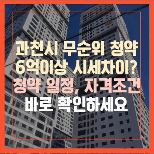 경기도 과천에서 진행되는 무순위 청약은 주변 시세 대비 높은 차익이 예상되지만, 청약 자격에 제한이 있어 하남시 감일 푸르지오보다는 경쟁률이 덜 할 수 있을 것 같습니다.