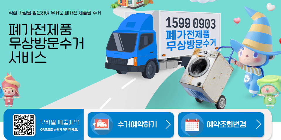 대형 폐기물 가전제품 중 훼손되지 않아 재사용이 가능한 제품은 무료로도 수거 가능합니다. 한국전자제품자원순환공제조합(1599-0909) 또는 홈페이지를 통해서도 수수료와 별도 가입 없이 인터넷 신청이 가능합니다.