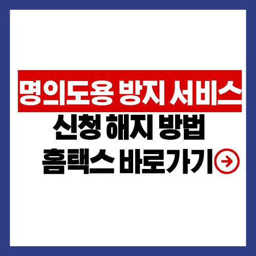 - 오프라인 신청: 인터넷 사용이 어렵다면 신분증 지참 후 세무서 민원실을 방문하여 명의도용 방지 서비스 해지 신청서를 작성하면 됩니다. 업무 완료 후에는 보안을 위해 반드시 다시 명의도용 방지 서비스를 신청하는 것을 잊지 마세요.