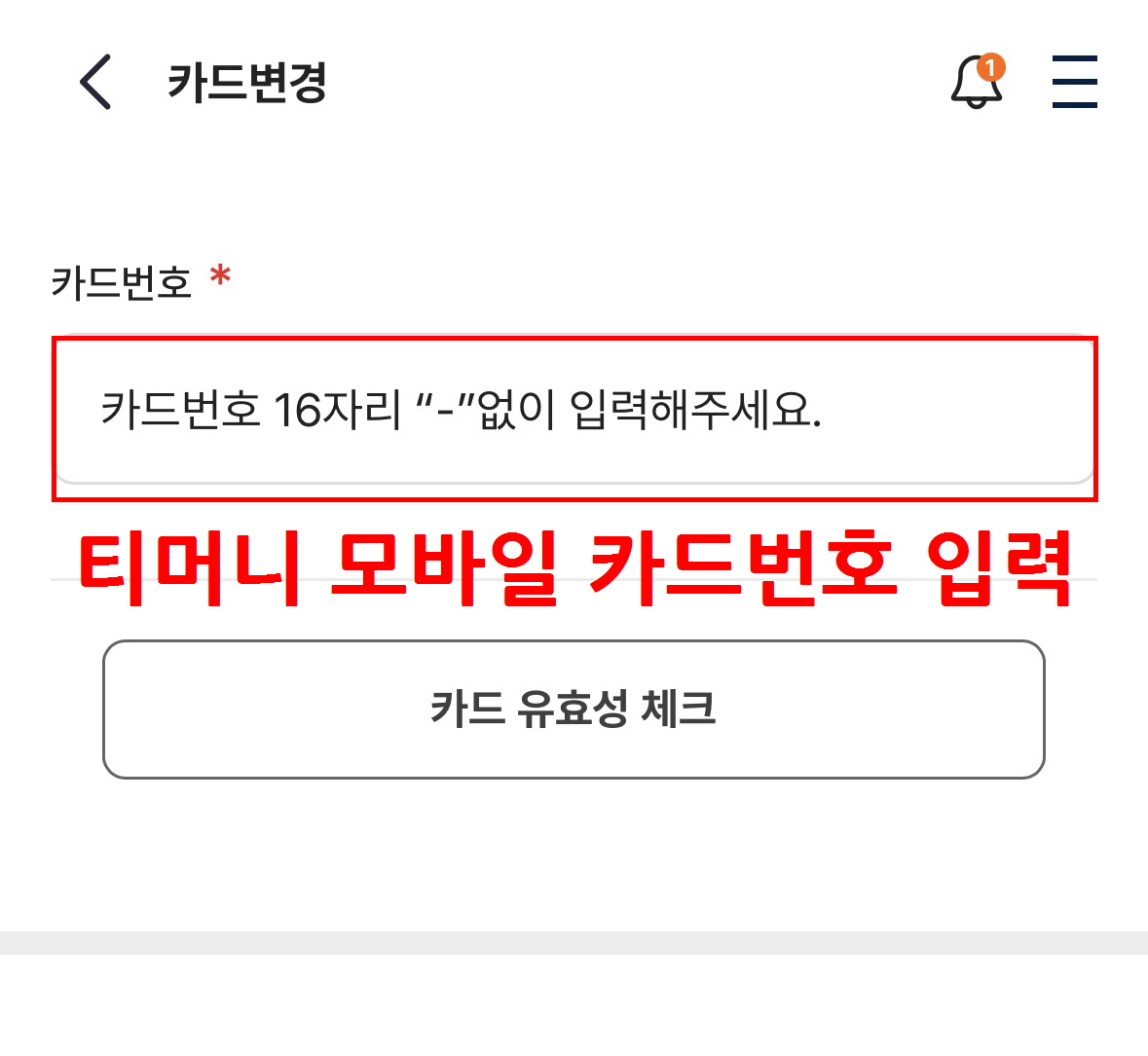 - 카드번호 확인: 모바일 티머니 앱에서 K패스로 사용할 카드의16자리 카드번호를 복사합니다.