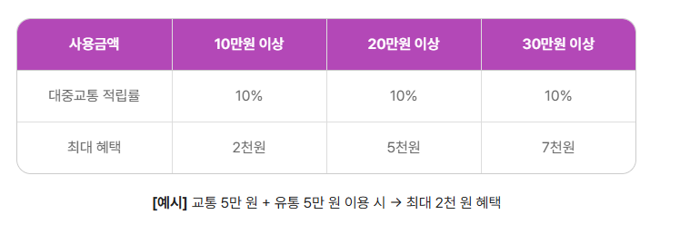 모바일티머니 K패스 신청방법을 완료한 사용자에게는 티머니만의 특별 혜택이 제공됩니다. 한 달 대중교통 이용 금액이 10만 원 이상일 경우 최대 7천 원까지 T마일리지가 추가 적립됩니다.