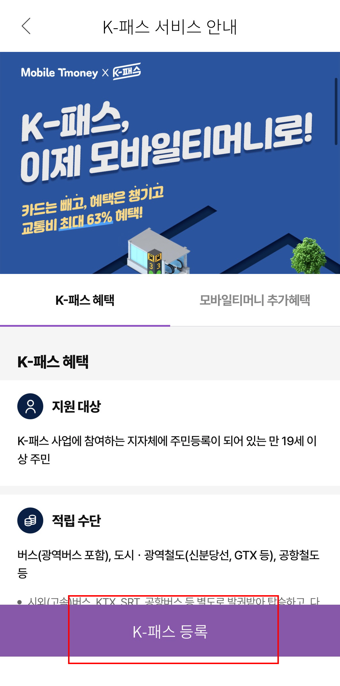 모바일티머니 K패스 신청대상 및 환급 혜택