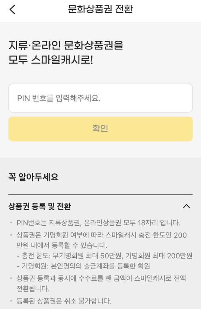 3. 문화상품권 스마일캐시 전환방법