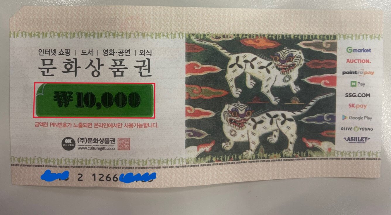오프라인 지류 문화상품권의 경우 금액란의 PIN번호가 노출되면 오프라인에서 사용이 불가하고 온라인에서만 사용가능합니다.