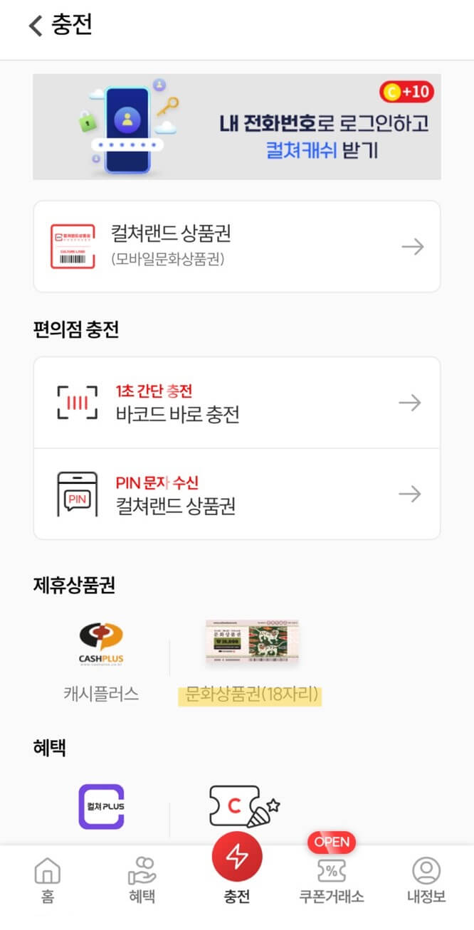 컬쳐랜드 충전하기