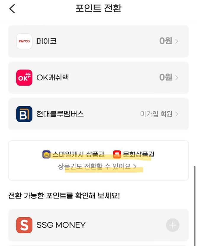 문화상품권 → SSG 머니 포인트 전환하기