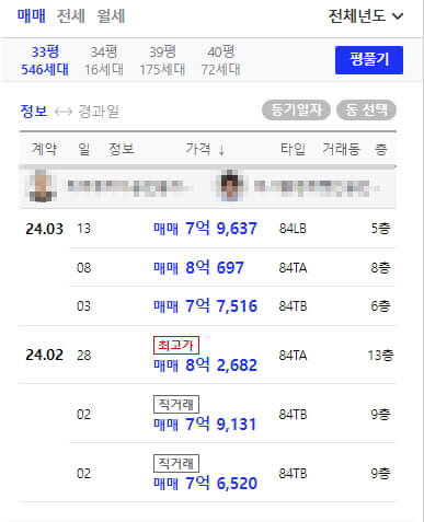 해당 단지는 23년 입주가 완료된 단지로 네이버 부동산 또는 아실 홈페이지에서 실거래가와 호가 확인이 가능합니다.