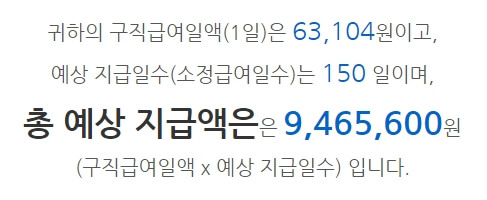 • 구직급여 지급액 = 이직 전 평균임금의 60% x 소정급여일수
