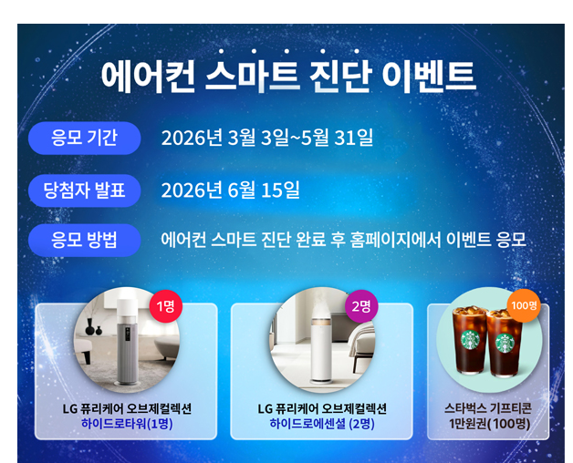 LG 에어컨은 스마트 진단 이벤트도 진행중에 있으니 사전 점검 후 이벤트에도 응모해 보시길 바랍니다.