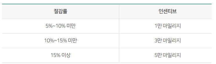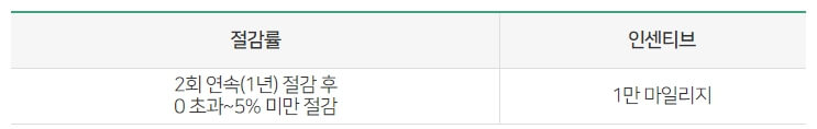 - 정기 마일리지는 1년 단위로 주행거리 감축 정도에 따라 2~7만 마일리지 차등 지급됩니다.