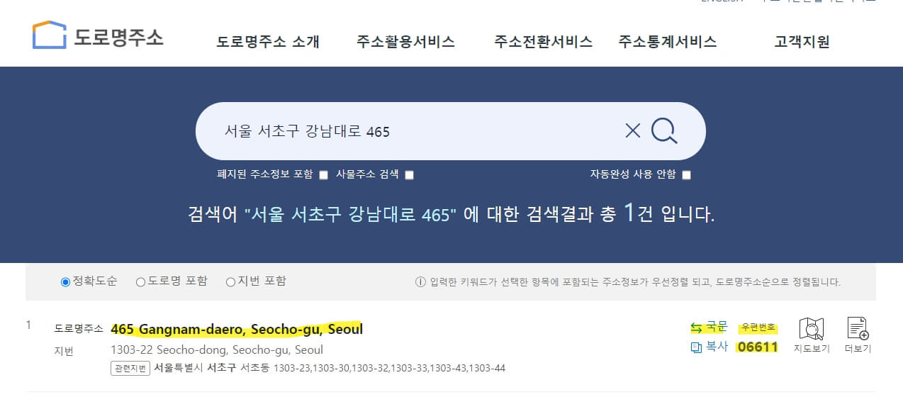 영어주소 변환 방법