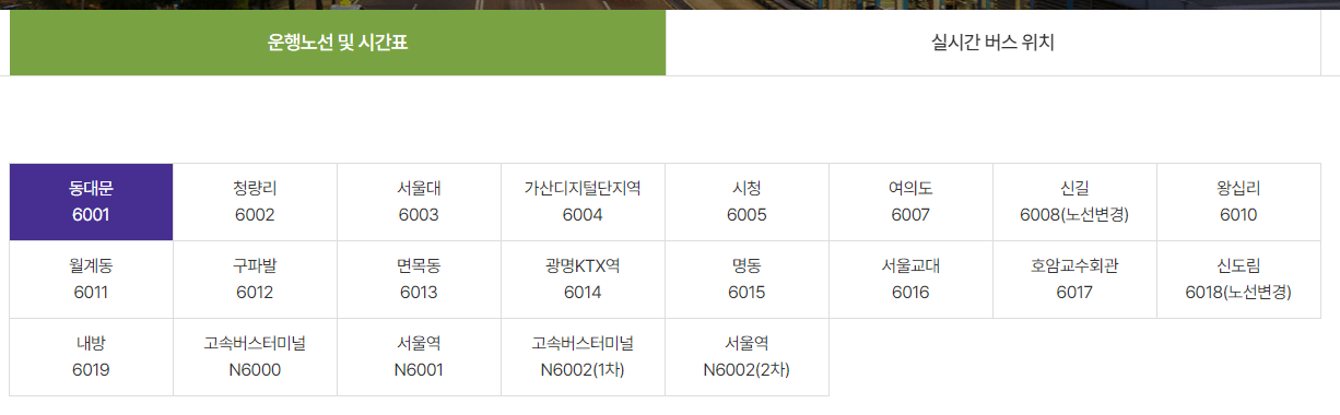 - 예약가능 버스 노선 : 6006,6009,6020,6200,6300,6600
