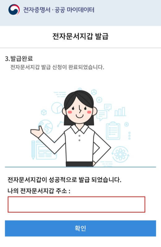 - 전자문서 지급 발급 완료되면 나의 전자문서 지갑 주소도 확인