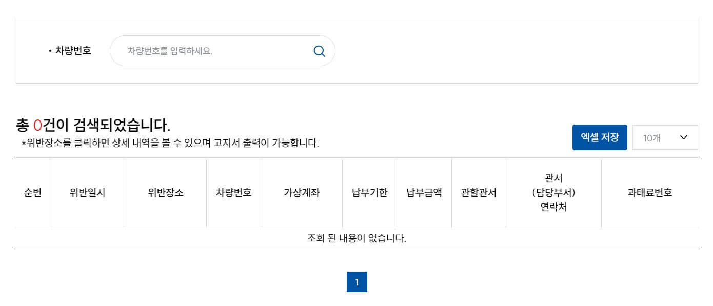 교통 미납과태료 조회 메뉴에서 차량 번호을 입력하면 위반 내역을 확인합니다.