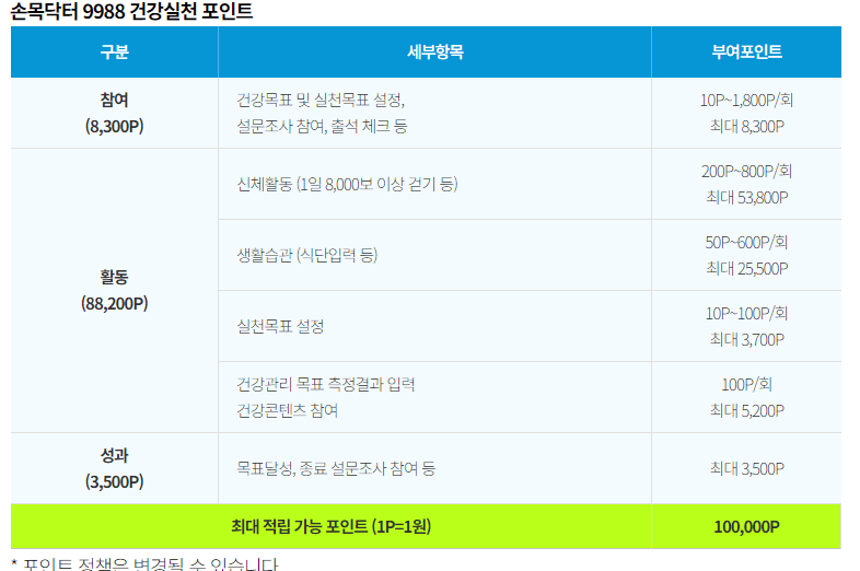 건강하고 운동도하고 포인트도 쌓을 수 있는 손목닥터 9988에 관심이 있으신 분들은 홈페이지 또는 스마트폰 앱을 다운로드하여 미리 신청해 보시기 바랍니다.