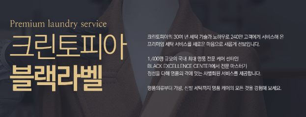 크린토피아 블랙라벨은 국내 최대 명품 전문 케어 센터로 명품 의류부터 가방, 신발까지 세탁이 가능한 서비스로 블랙라벨 가격표 또한 일반 의류 서비스와 차이가 크게 발생합니다.