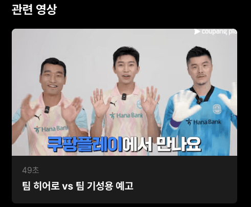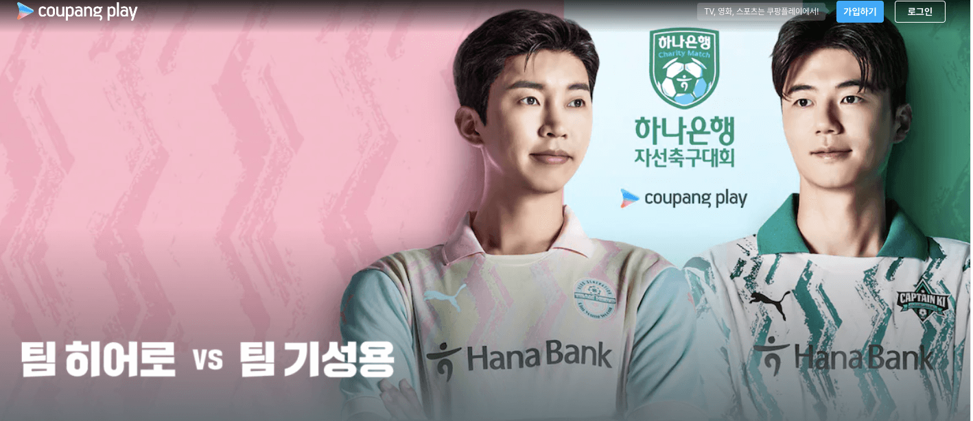 - 쿠팡 플레이 앱의 메인 화면 또는 이벤트 페이지에서 '하나은행 자선 축구 대회' 관련 배너를 클릭합니다.