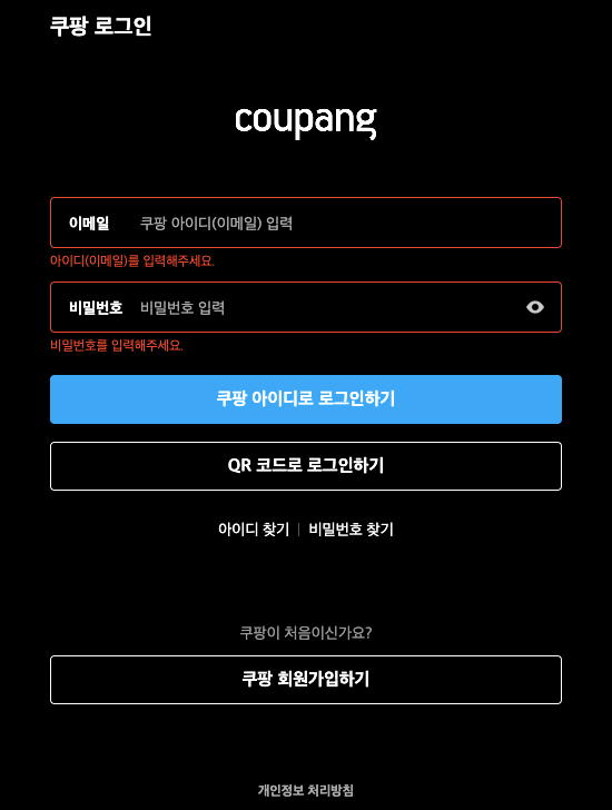 - 쿠팡 플레이 앱을 다운로드한 후 기존의 쿠팡 계정으로 로그인합니다. 쿠팡 계정이 없다면, 회원 가입을 먼저 진행하세요.