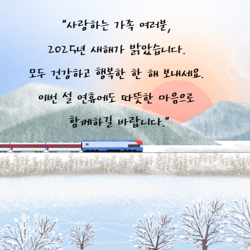 "사랑하는 가족 여러분, 2025년 새해가 밝았습니다. 모두 건강하고 행복한 한 해 보내세요. 이번 설 연휴에도 따뜻한 마음으로 함께하길 바랍니다."