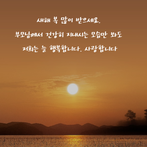 "새해 복 많이 받으세요. 부모님께서 건강히 지내시는 모습만 봐도 저희는 늘 행복합니다. 사랑합니다."