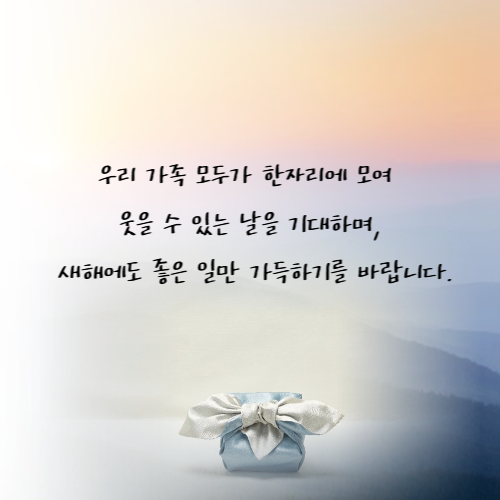 "새해 복 많이 받으시고, 가정에 늘 평안과 행복이 함께하시길 기원합니다."