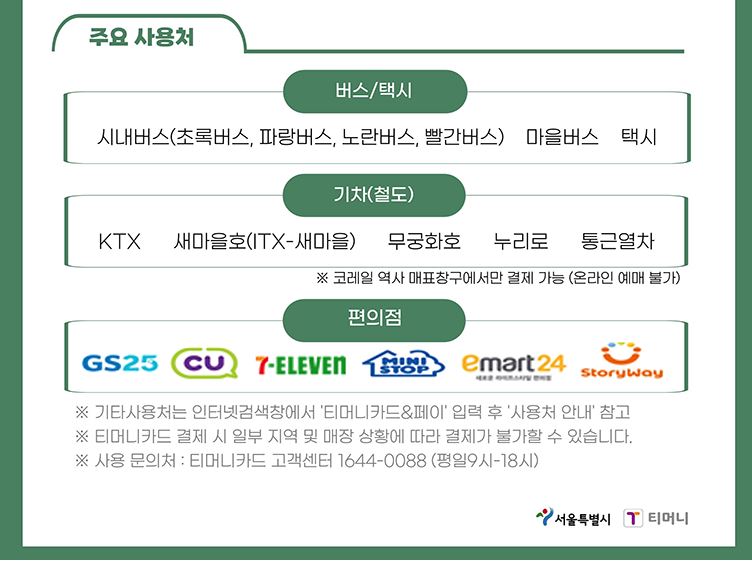 ✔ 버스·택시·편의점 등 티머니 가맹점에서 사용 가능