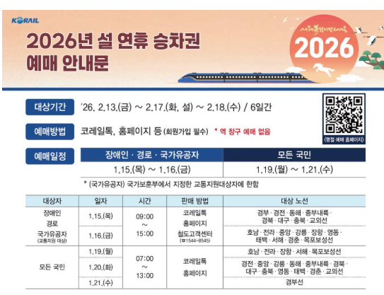 2026년 설날 KTX 기차표 예매 일정 (코레일 공식)