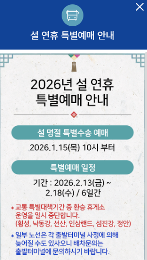 • 명절 기간에는 임시 배차 차량이 수시로 추가됩니다.