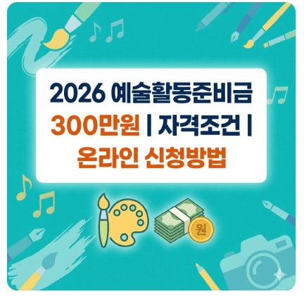 - 지원 금액: 1인당 예술활동준비금 300만원 (일시 지급)