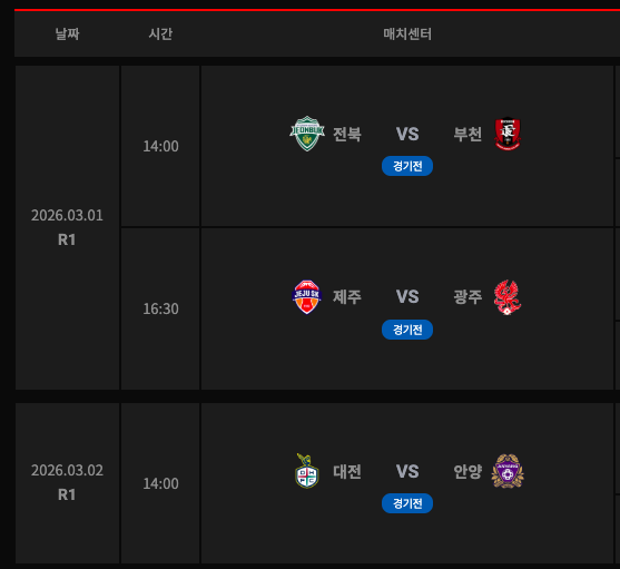 📅 2026 K리그1 개막 라운드 상세 일정