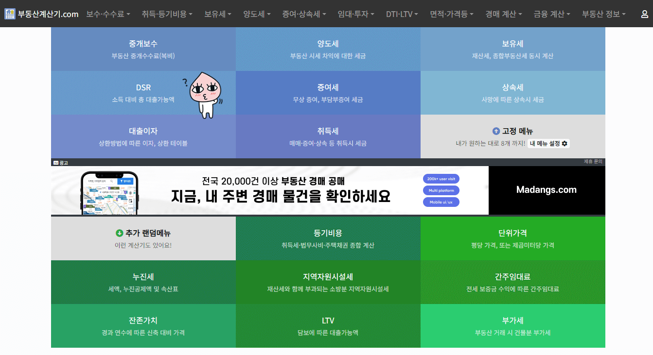 먼저 부동산 계산기.com 사이트에서 DSR 계산기를 선택합니다.