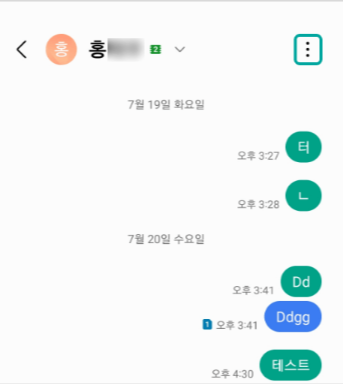 아이폰 문자메세지는 메세지 목록에서 별도 회선 구분 아이콘이 없고 마지막 수신되 회선에 따라 자동으로 메세지가 발신됩니다. 메세지 창 화면에서 회선 변경 내역을 확인할 수 있습니다.